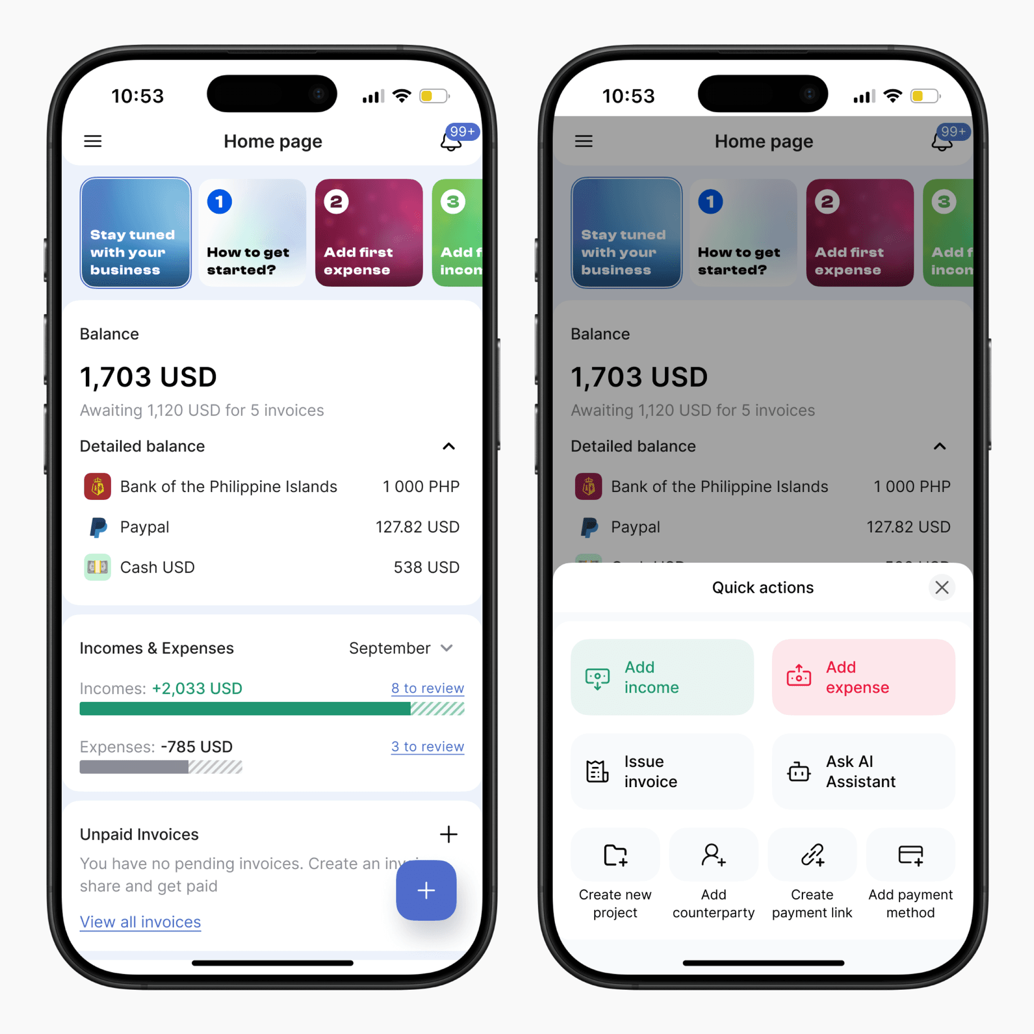 Financial tracking and budgeting service designed for solopreneurs. It provides tools for tracking income and expenses, generating reports, invoicing, and automating financial processes, offering entrepreneurs a convenient and accessible solution for managing finances from mobile devices.